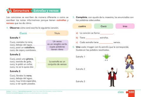 Ámbito: Literatura | Aprendizaje esperado: Canta, lee y reescribe canciones y rondas infantiles. cien 100
