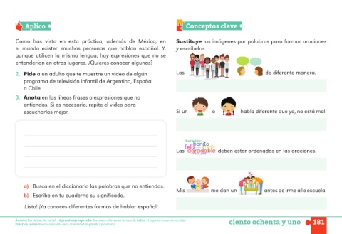 Ámbito: Participación social | Aprendizaje esperado: Reconoce diferentes formas de hablar el español en su comunidad. ciento ochenta y uno 181