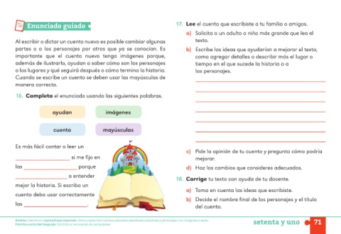 Ámbito: Literatura | Aprendizaje esperado: Dicta y reescribe cuentos conocidos mezclando anécdotas y personajes, con imágenes y texto. setenta y uno 71