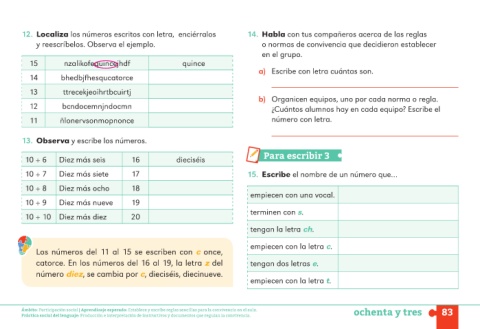 12. Localiza los números escritos con letra, enciérralos 14. Habla con tus compañeros acerca de las reglas