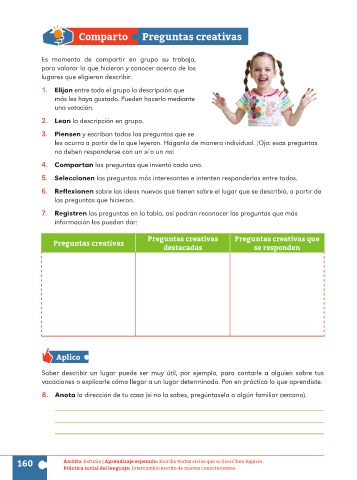 160 Ámbito: Estudio | Aprendizaje esperado: Escribe textos en los que se describen lugares.