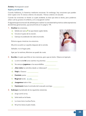 2. Escribe el sujeto que falta en las oraciones, pero que es tácito. Observa el ejemplo.