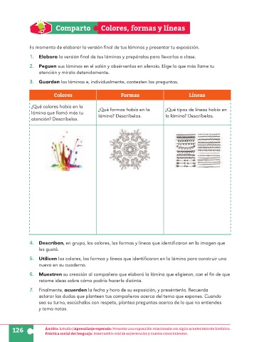 5. Utilicen los colores, las formas y líneas que identificaron en la lámina para construir una