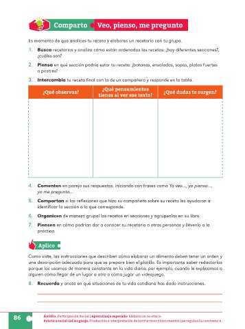 86 Ámbito: Participación Social | Aprendizaje esperado: Elabora un recetario.