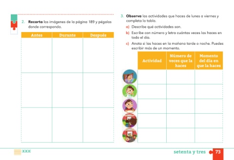 2. Recorta las imágenes de la página 189 y pégalas completa la tabla.