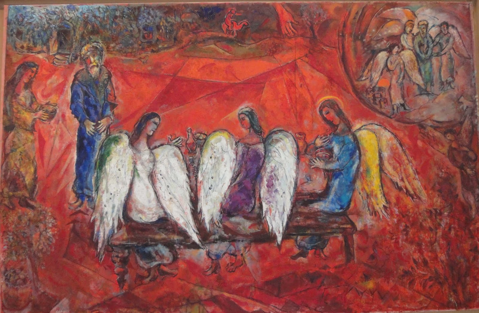 Abrahán y los tres ángeles Marc Chagall (1958-1960). Museo Nacional del Mensaje Bíblico Marc Chagall, Niza (Francia)